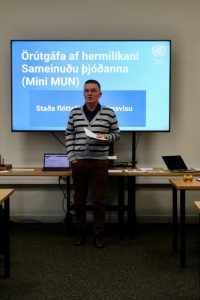 Þorvarður Atli Þórsson, stjórnarformaður í félagi SÞ bauð þátttakendum í hermilíkan SÞ – Model UN. Þátttakendur settu sig í spor fulltrúa fimm aðilarrríkja á vettvangi Mannréttindaráðs SÞ og gerðu, eftir samninga, erindi og almennt sterka diplómatíska takta, atlögu að ályktun um réttláta vernd flóttafólks.