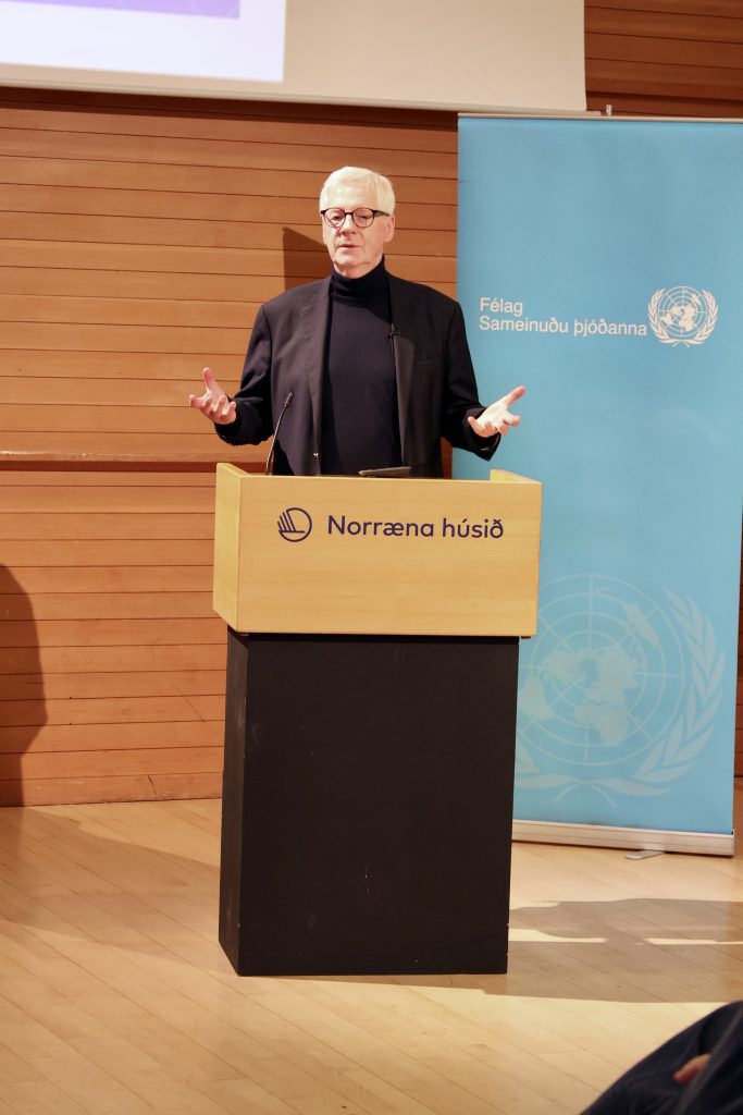 Árni M. Mathiesen fjallaði um áhrif Íslands á vettvangi SÞ og benti á að smæð landsins fylgi ekki aðeins takmarkanir heldur einnig sérstök tækifæri. Hann lagði áherslu á að ef Sameinuðu þjóðirnar væru ekki til þyrfti einfaldlega að finna þær upp.
